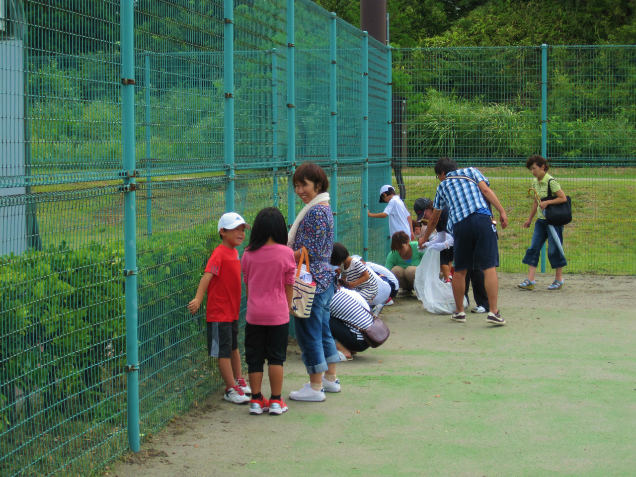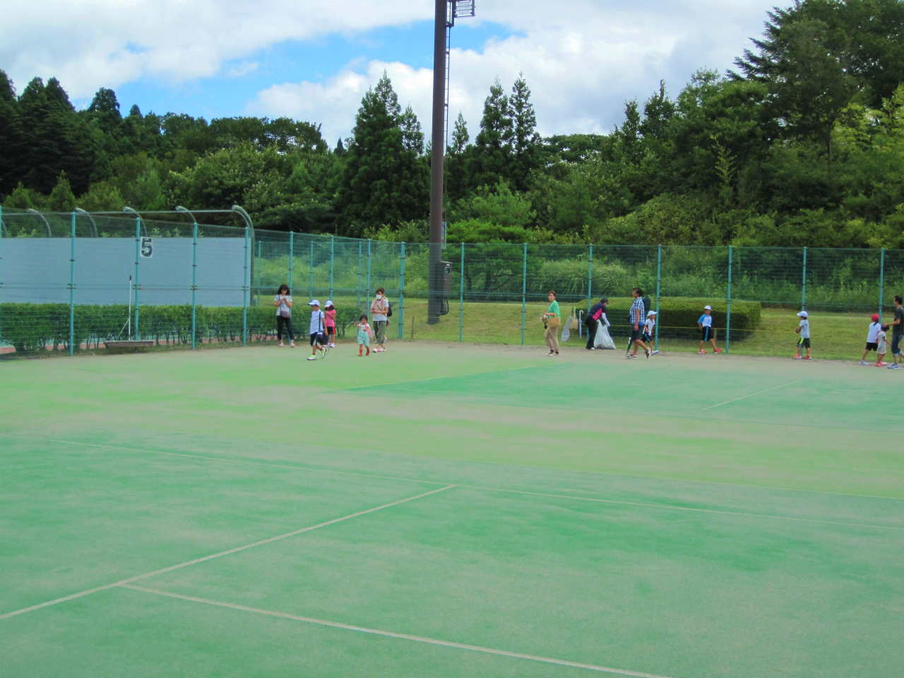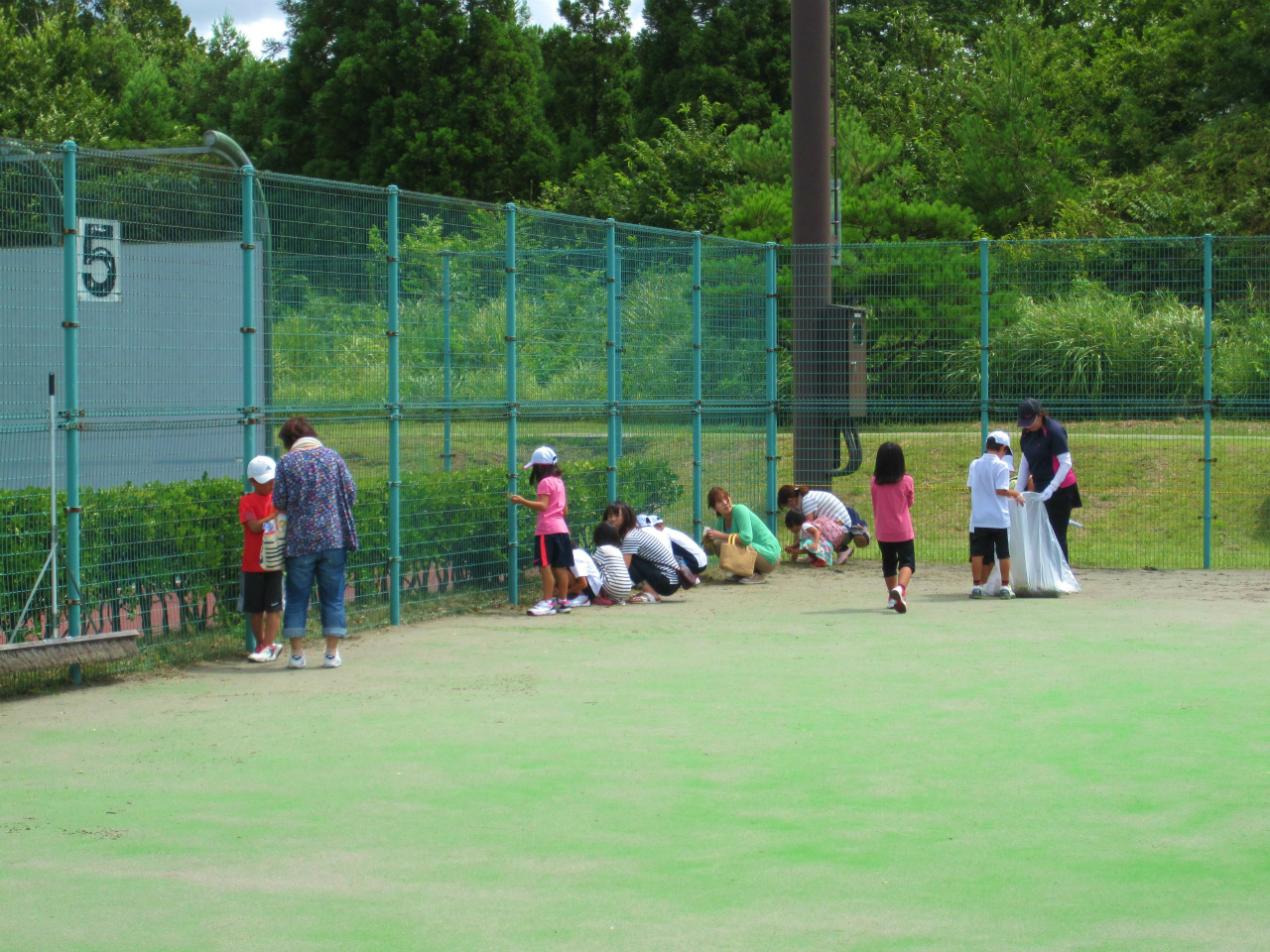 綺麗なコートでお迎えできるように、ジュニアの生徒達と草刈りをしました。